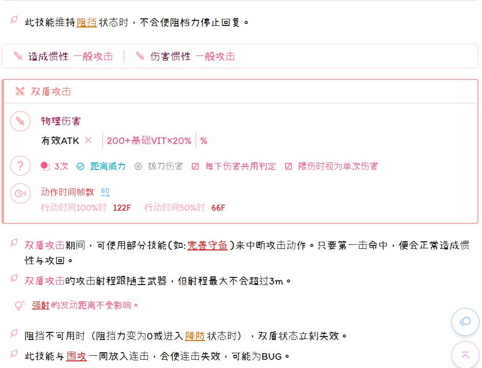 紧急补充阻挡力,保证生存和异抗,而且还有一些回蓝,虽然不足以补回消耗,但仍然可以降耗并保持双盾的格挡保证减伤和异抗。(就这一个能主动回格挡的,你还不点?)