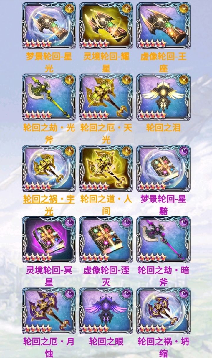 轮回重铸次数3,可以通过星界轮回大战(公会战)免费获得。xx斧给输出,xx泪给非输出。(都需要重铸才厉害,不然不如某些常驻的五星装备)