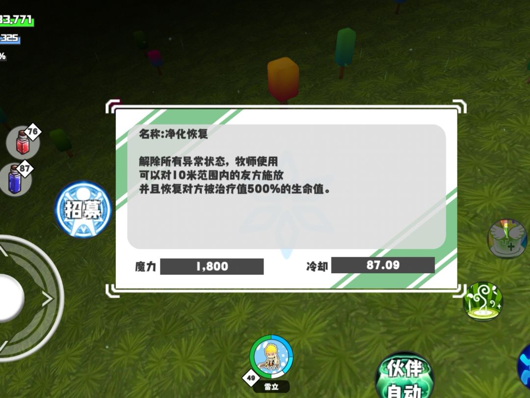 净化恢复:(需要一捏捏的练度)