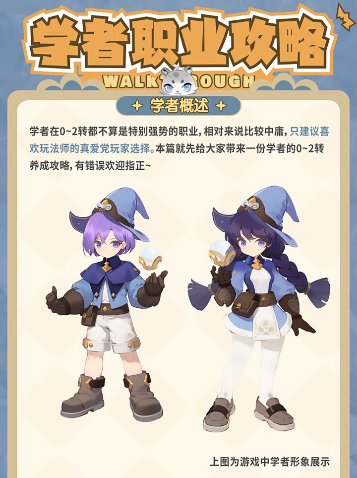 学者在0~2转都不算是特别强势的职业,相对来说比较中庸,只建议喜欢玩法师的真爱党玩家选择。本篇就先给大家带来一份学者的0~2转养成攻略,有错误欢迎指正~