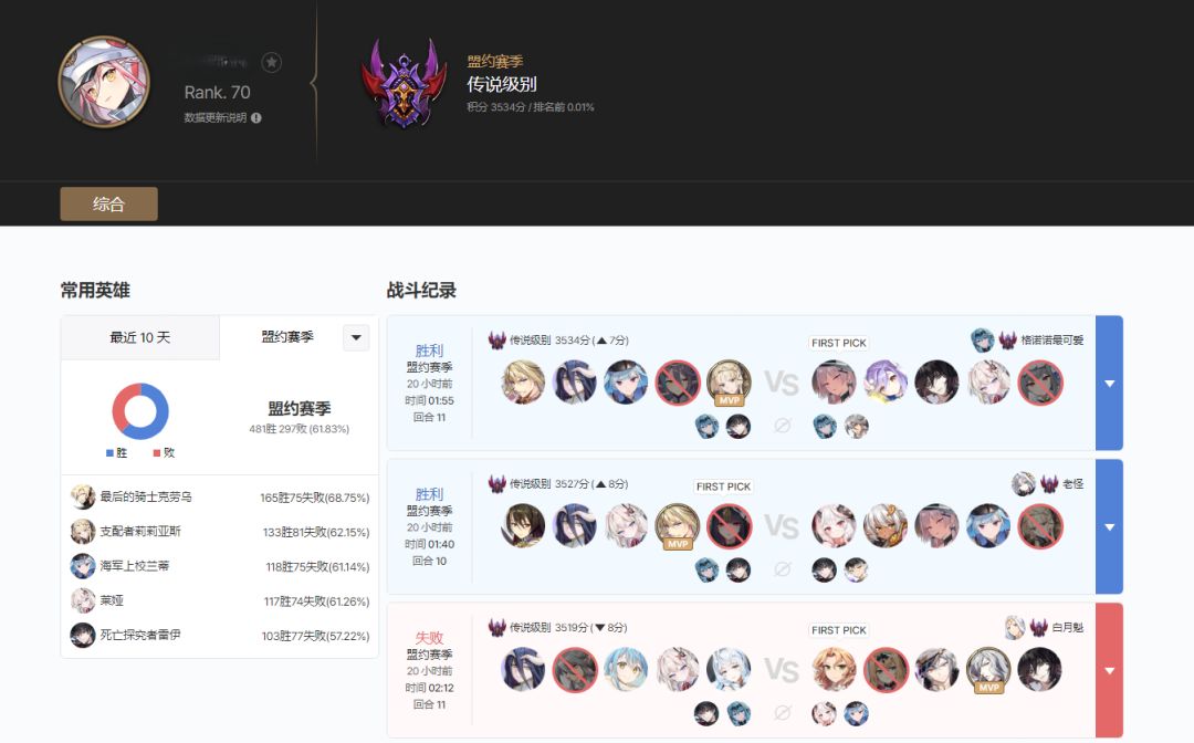 *注:战绩查询网站的数据来源为游戏内世界竞技场的实际战斗数据