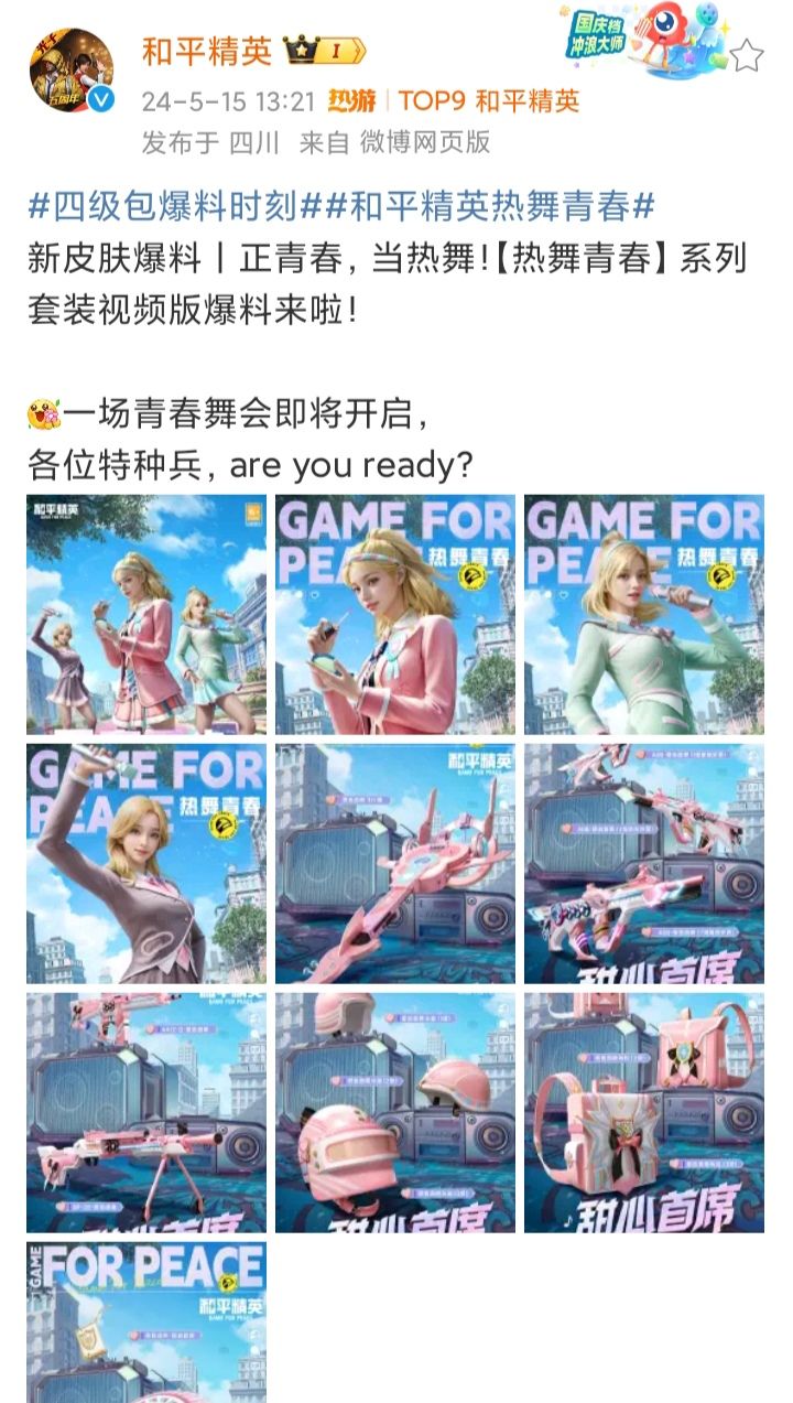 今天《和平精英》发图文公布“热舞青春”系列