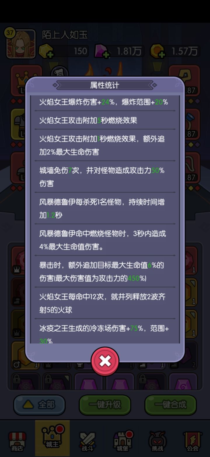 那你们的给了你们的建议,把主C换成火女王了。洗了几个火的宝石,然后关卡还是顶不住5波,深渊还是爬不动。我还要洗什么宝石吗?