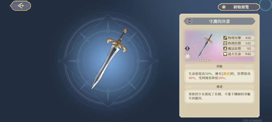 守护的决意:属于剑类武器,效果可以提高生命值,并且拥有护盾时提高防御和免伤,比较适合一些用剑的绿盾,比如泰登,内尔伽勒