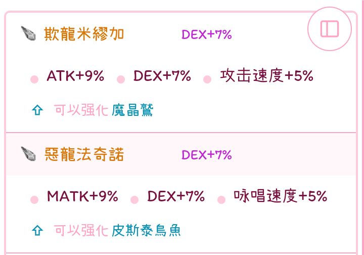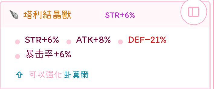 而其他两个石头的加成是3%,也就是塔利的一半,也就是只加1成功率,相对于DEX+7=7/6≈1.17,对比来说武器值得用的只有塔利而已。