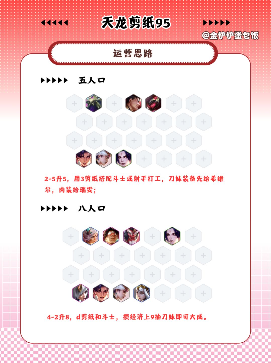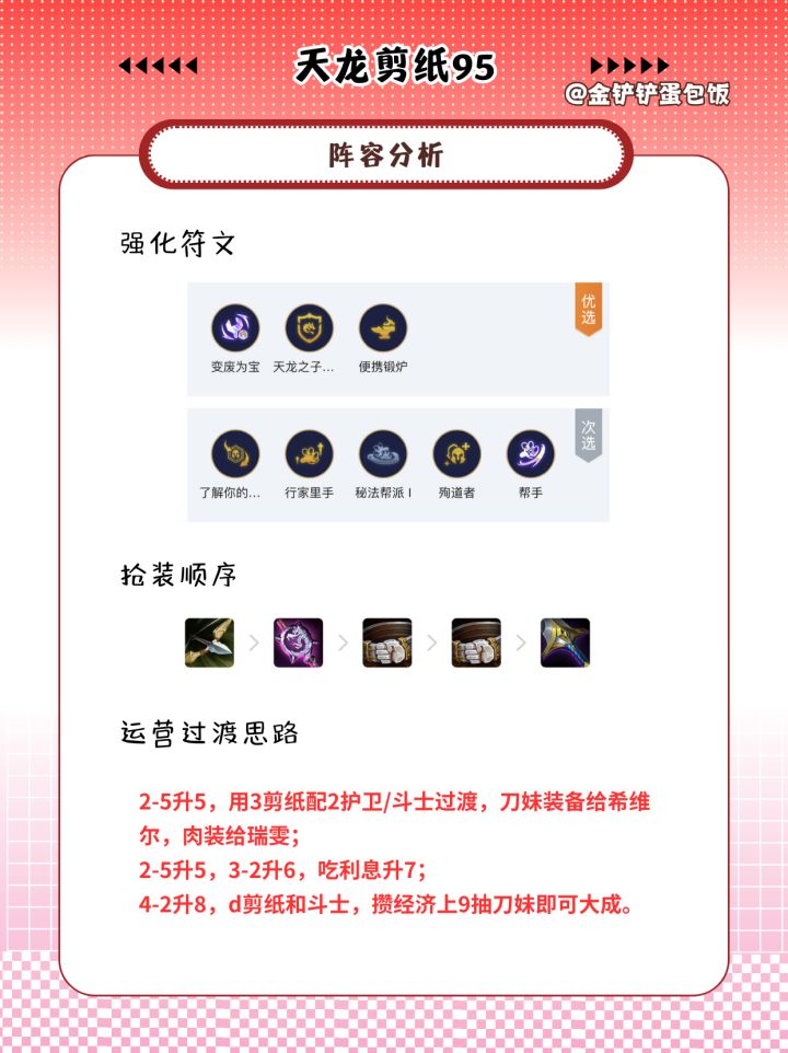 4-2升8,d剪纸和斗士,攒经济上9抽刀妹即可大成。