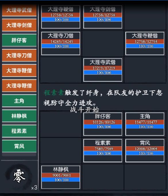 还有就是主角的太虚拳,天赋点满,武学自动打气血最高敌人并且减疗(资源消耗最少)