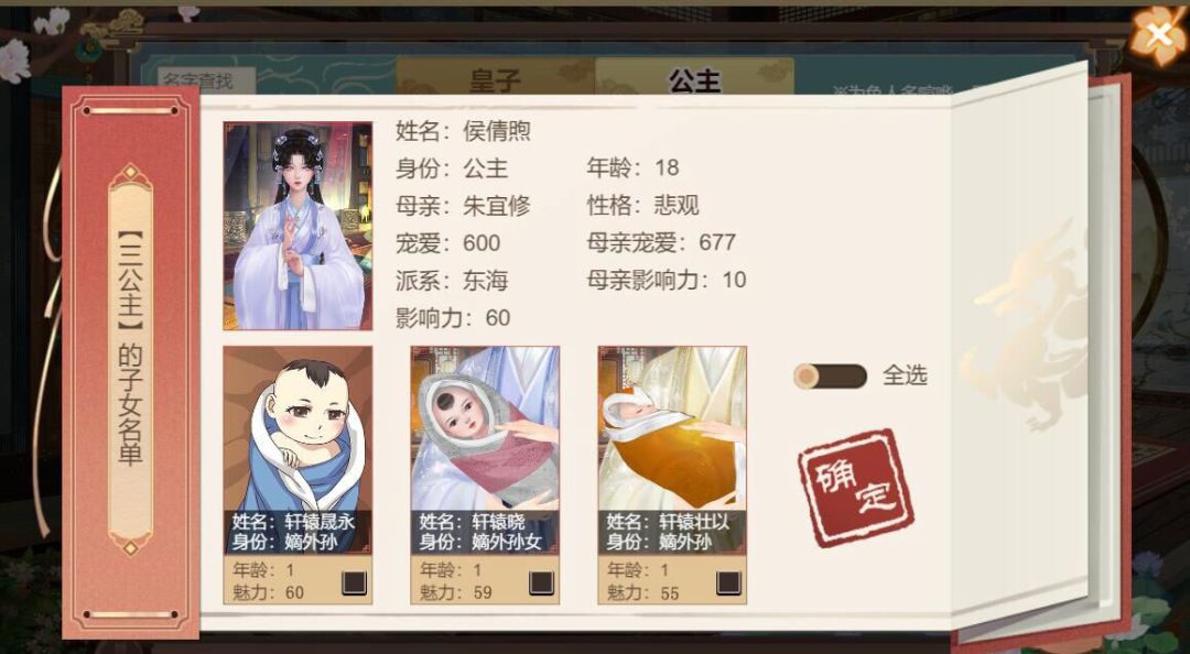 ※ 优化了「皇孙」的身份和序齿,新增专属「外孙」的「公子」「郡主」等称呼