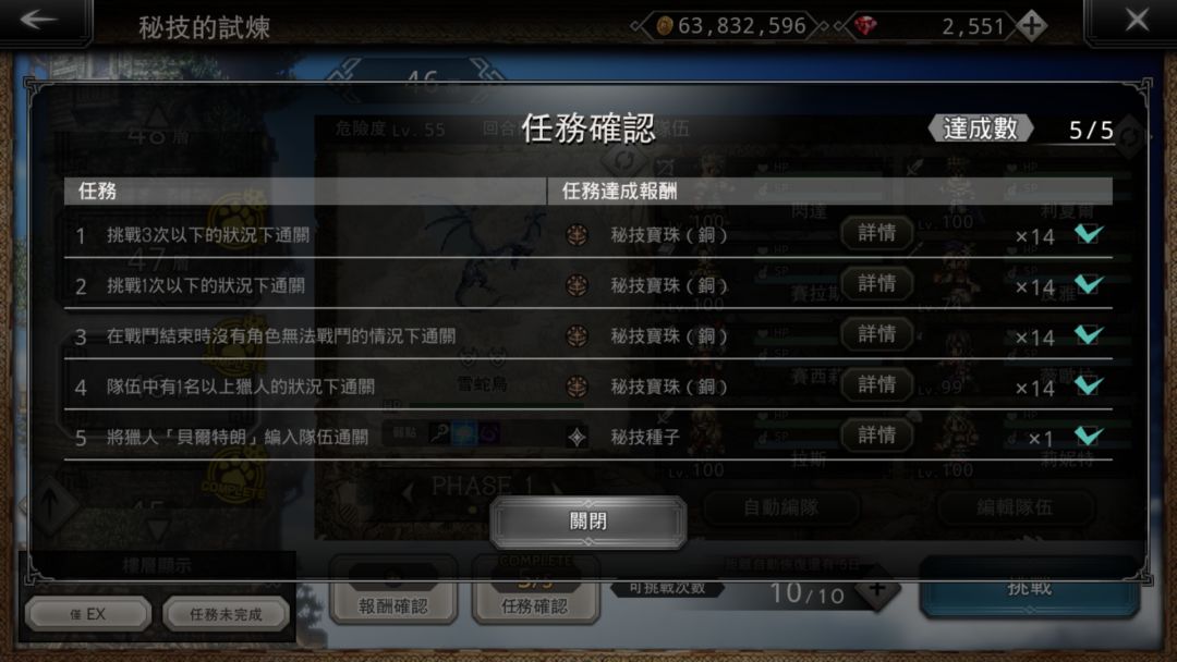 Tip:就算挑战失败,但达成条件也可以获得奖励。