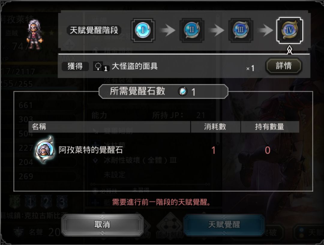 第四阶同样需要一颗觉醒石。Tip:三星角色无法进行四觉。