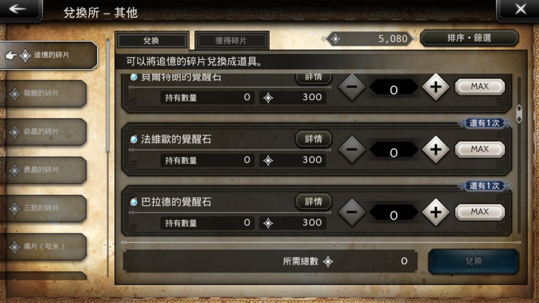 Tip:目前台服开放了兑换角色觉醒石。每月可在兑换所中兑换一次。