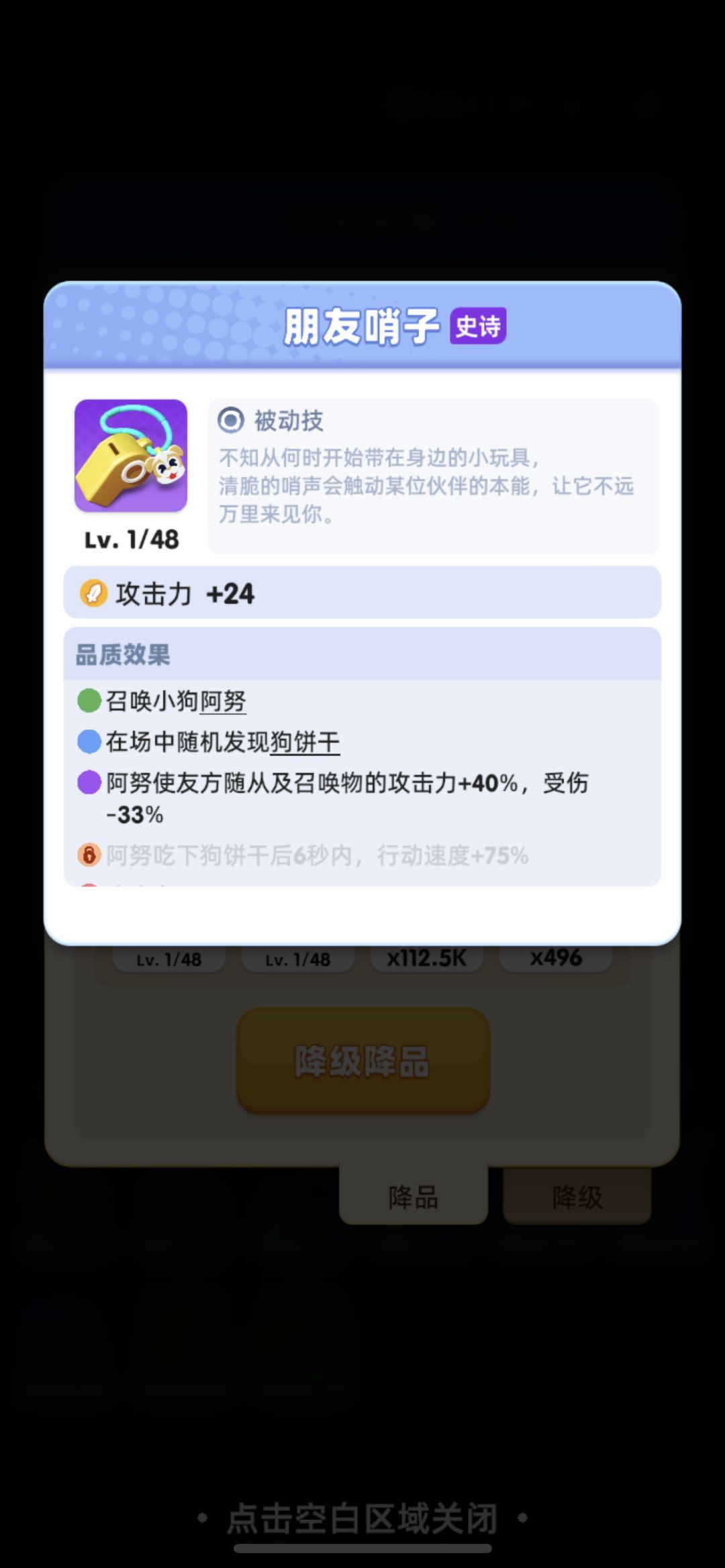 如果你有喷雪机器人 还有紫色品质的朋友哨子的话。那简直就是完美搭配,紫色勺子让召唤物增加40%攻击力还减少伤害。