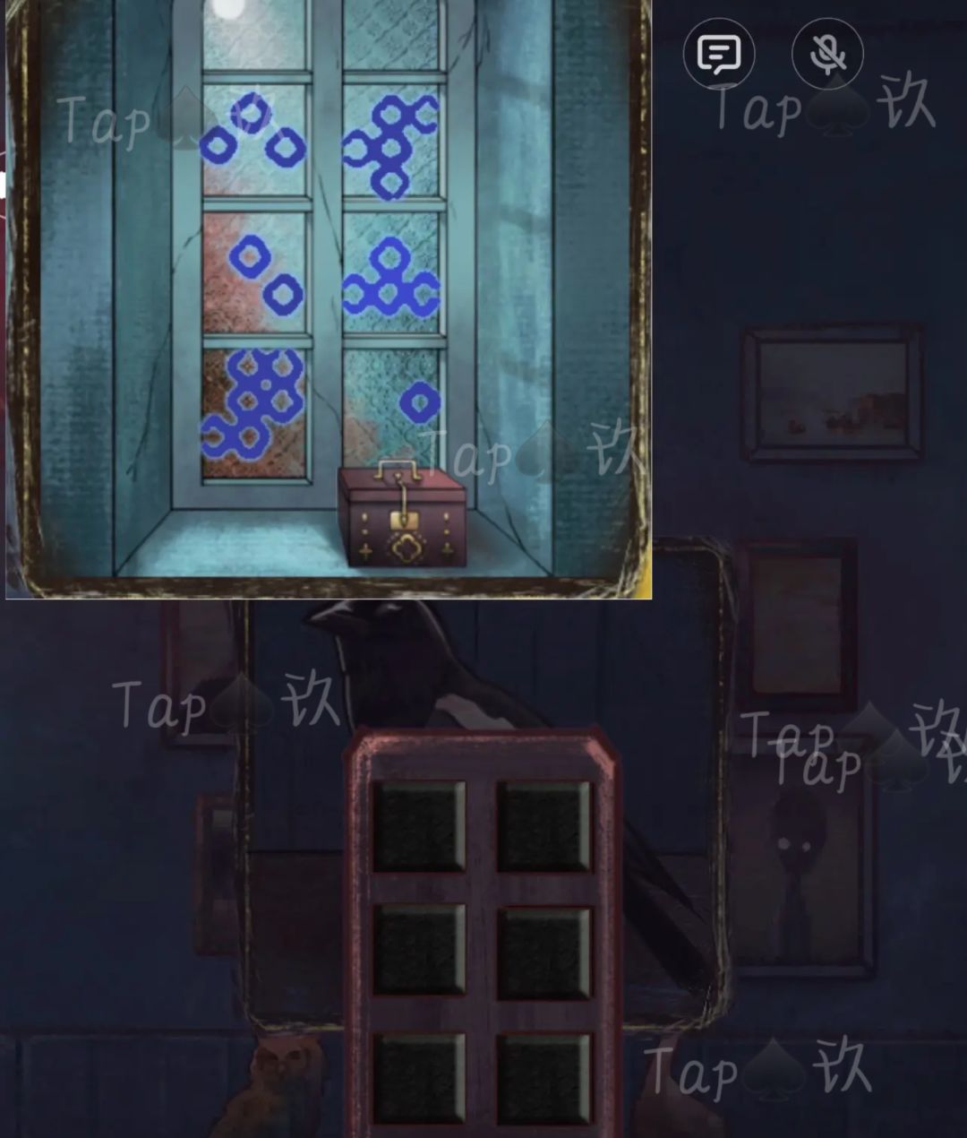 点击解锁窗台上的箱子,获得【花纹钥匙】