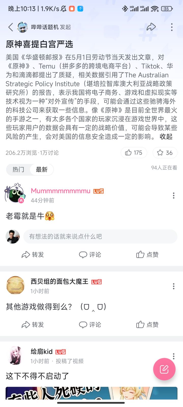美国《华盛顿邮报》在5月1日劳动节当天发出文章,对《原神》、Temu(拼多多的跨境电商平台)、Tiktok、华为和滴滴都提出了质疑,相关数据引用了The AustralianStrategic Policy Institute(堪培拉智库澳大利亚战略政策研究所)的报告,表示我国将电子商务、游戏和虚拟现实等技术视为一种“对外宣传”的手段,可能会通过这些驰骋海外的科技公司来获取一些信息。像《原神》是目前全世界最火的手游之一,有太多各个国家的玩家沉浸在游戏世界中,这些玩家用户的数据会具有一定的战略价值,可能会导致某些风险的产生,会对美国的信息安全造成一定的影响。