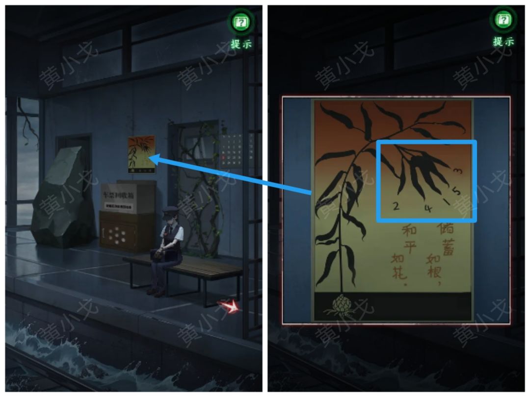 2.点击查看墙上的海报(注意叶子的位置和对应的序号)