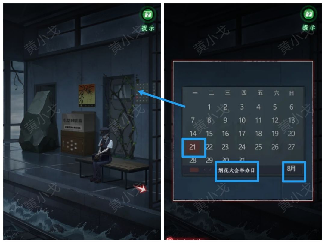 3.点击查看墙上的日历,获得线索(烟花大会举办日:8月21日)