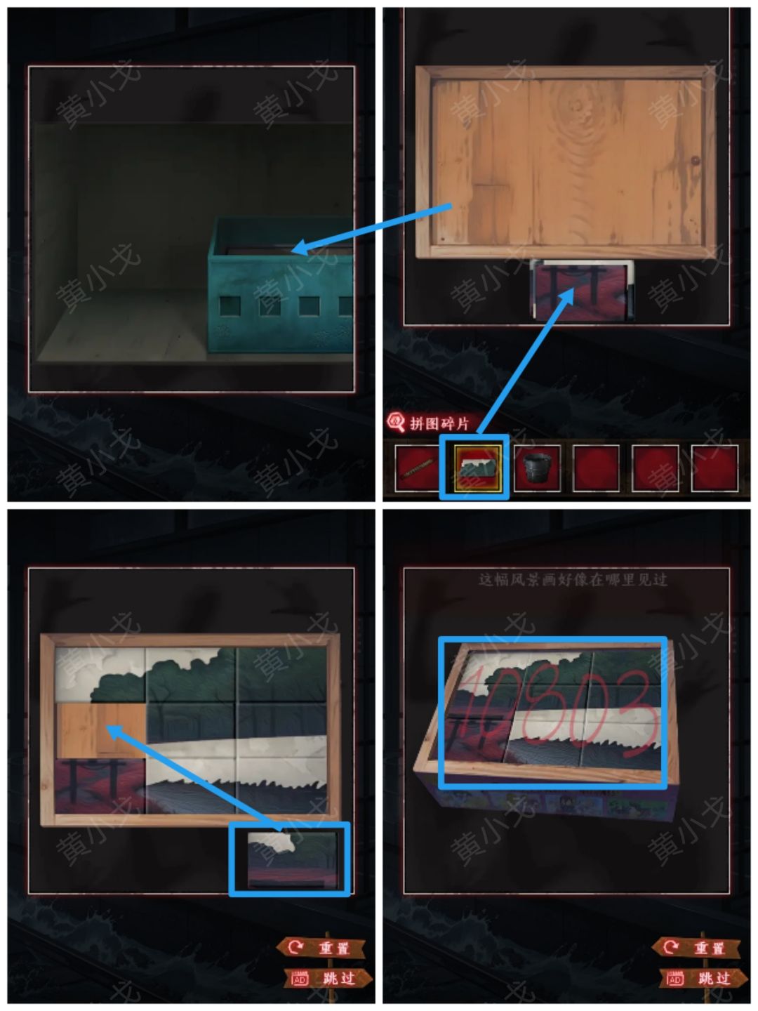 13.打开盒子;点击盒子里的相框,放上【拼图碎片】,完成拼图,获得线索(10803)