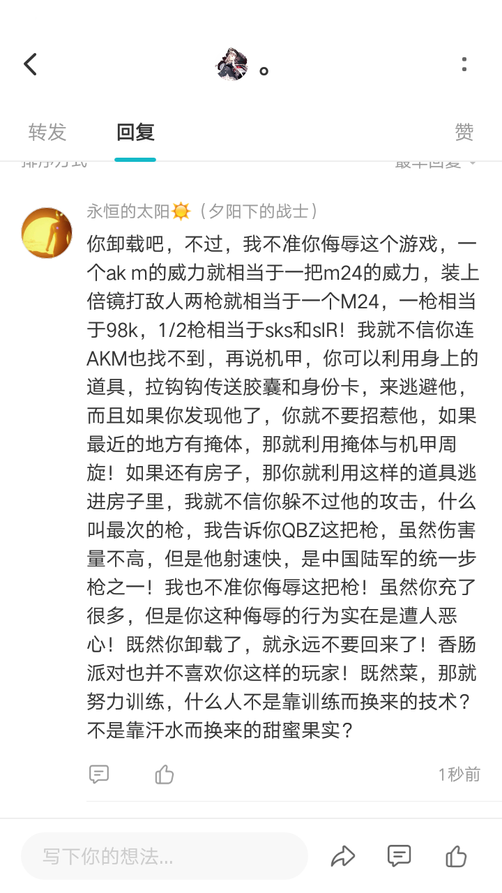 还有这人,不玩就不玩,还说自己是狗,是不是承受不了啊,还是他恶意引战?