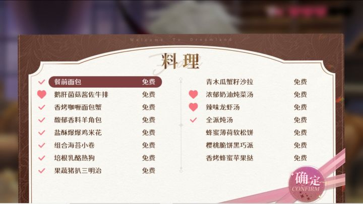 喜欢的料理:鹅肝菌菇酱佐牛排,辣味龙虾汤,浓郁奶油炖菜汤