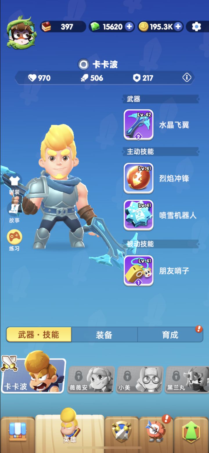 外围养成的话主要为武器、技能、装备套装三大部分。