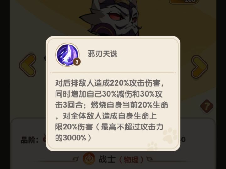 银色限时神将比较不错的打手,跟逐太史慈水平相当,但好在自身魔将阵营,在目前魔将一个能打的都没有(魔司马培养优先级不高)情况下,魔刃曹操优先培养打种族塔(虽然奖励没什么东西),缺点就是大招扣血,以及没有减伤属性。