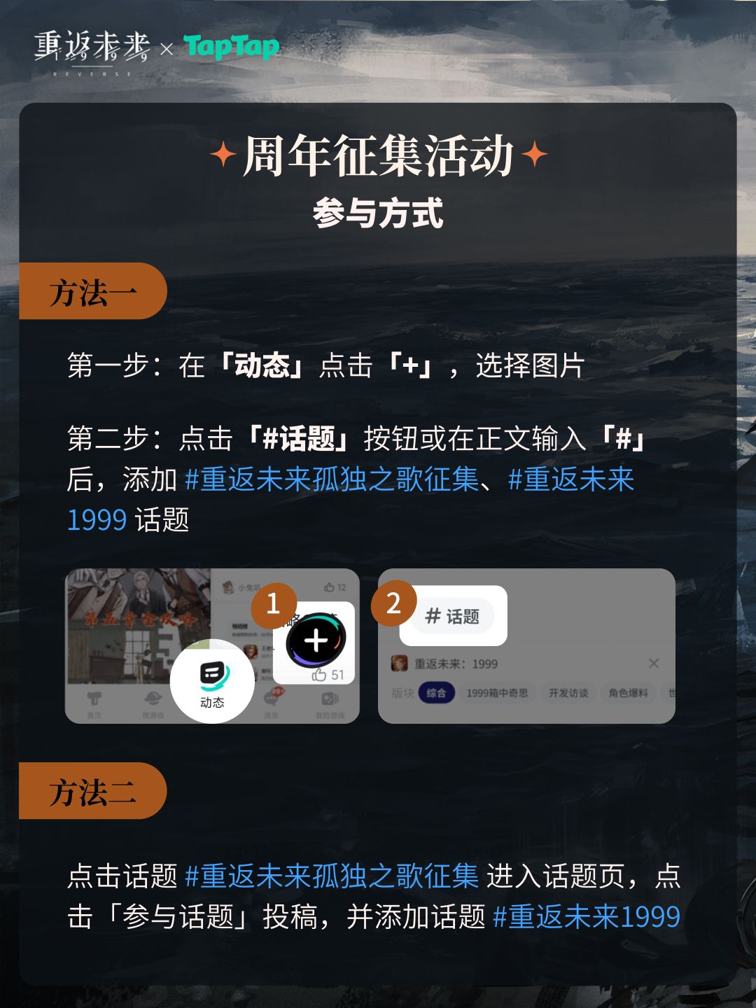 带话题#重返未来孤独之歌征集 、#重返未来1999 发布动态,长帖不参与本次活动
