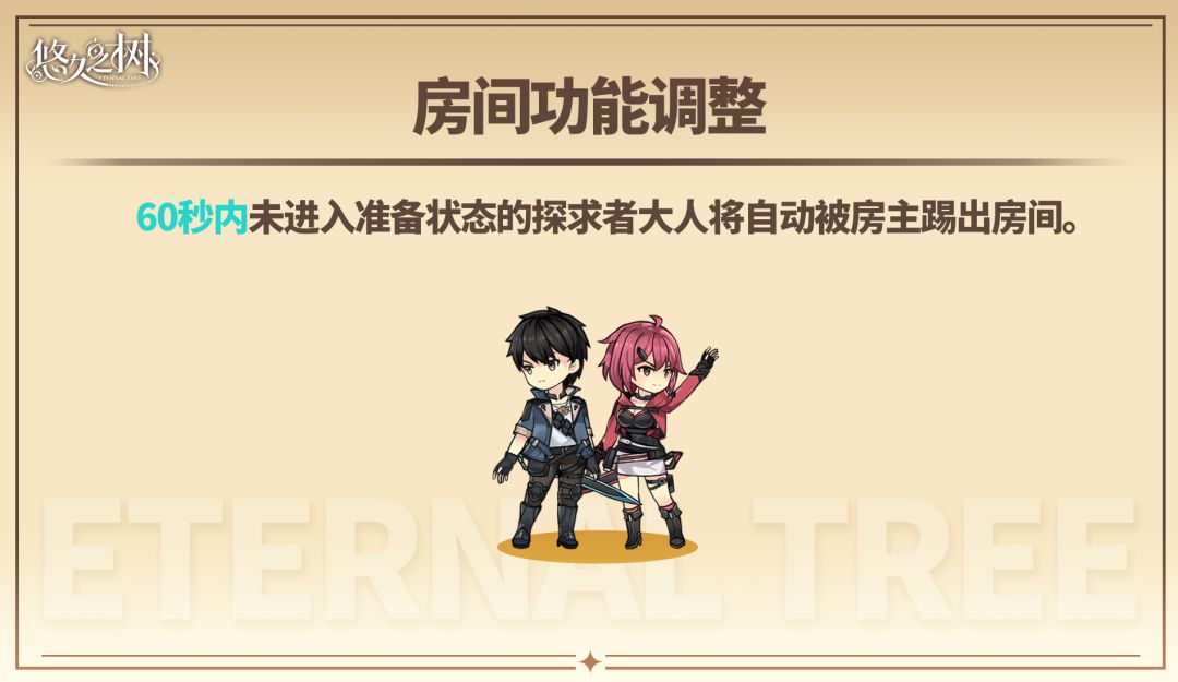 此外,2.5周年版本更新后,60秒内未进入准备状态的探求者大人将自动被房主踢出房间。
