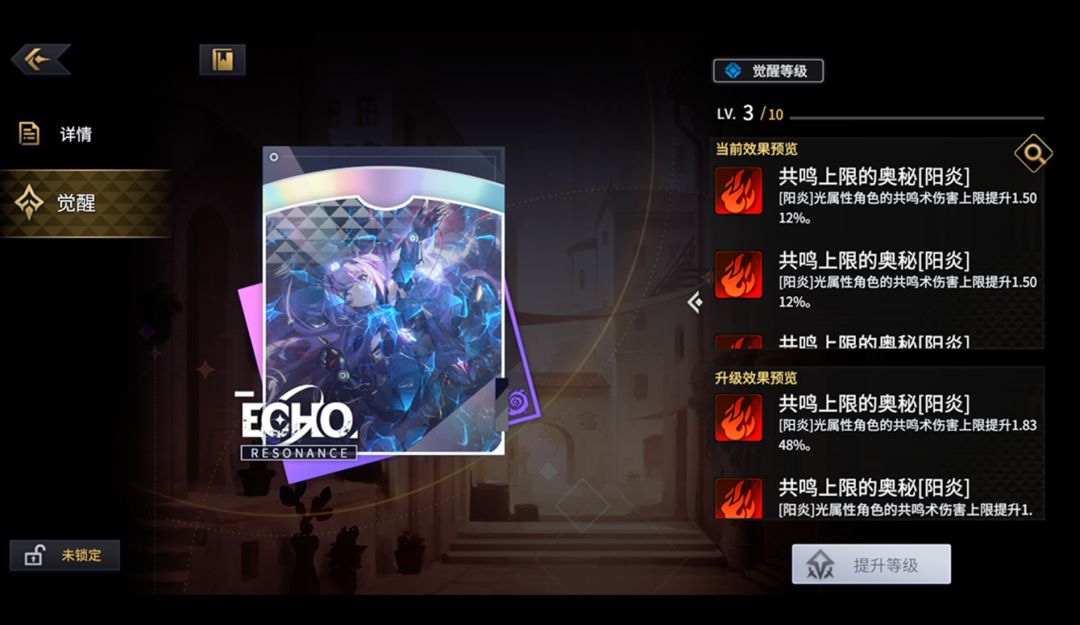 机偶不会掉落新的回响。取而代之的是,成功讨伐机偶后,探求者大人们将可以使用新的战利品,为特定回响解锁全新的“回响觉醒”系统!在“回响觉醒”系统中,探求者大人们可以不断使用掉落的素材来为回响强化属性数值或赋予新的词条特效。另外,进行过觉醒的回响,也会解锁全新的视觉效果。