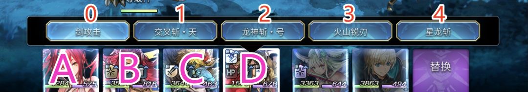 角色从左到右顺序为ABCD对应1号→4号位