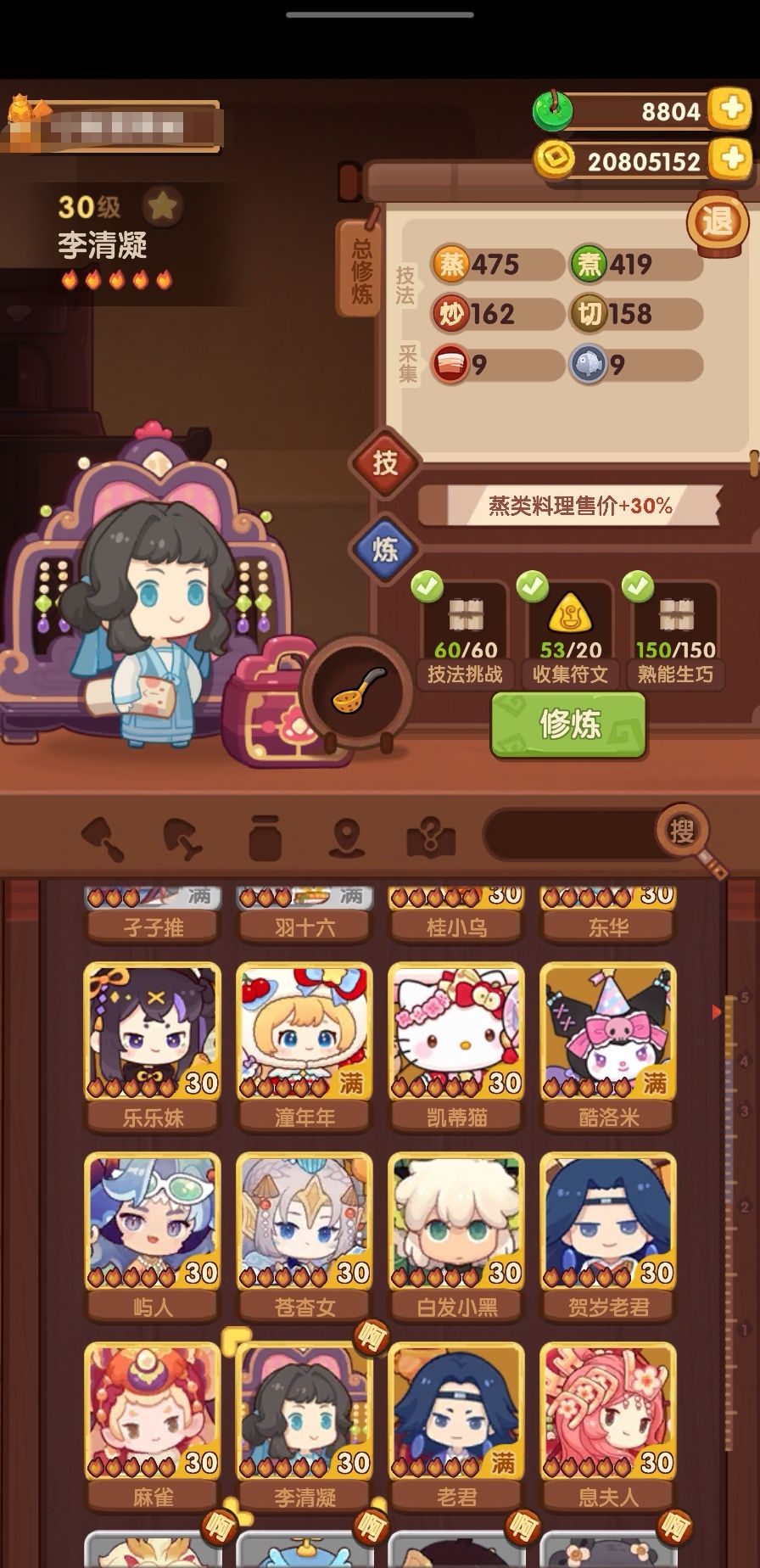 第四个修炼的五火厨师是李清凝,四星修炼菜谱较容易,具体忘了,也用了一个厨具,150份五星菜任务用的是青柠金汤翅捞饭(用了一个金漏勺,时间太长了,抽池多的可以用其他菜),终于有了第一个蒸环[表情_...