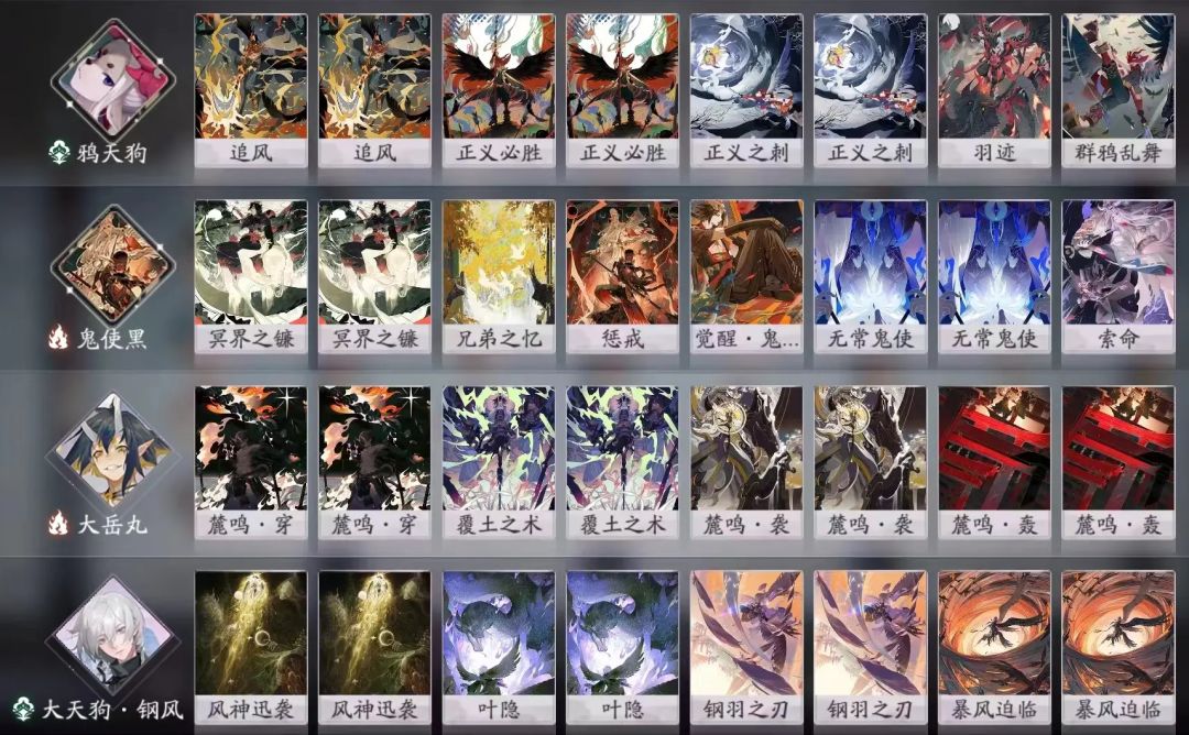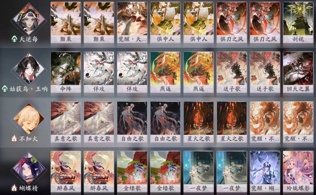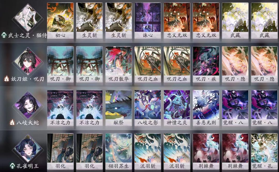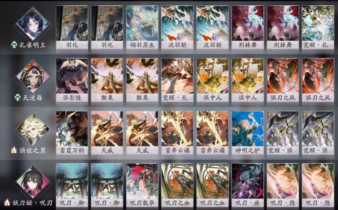 5.1.1、孔雀明王卡组。——这么称呼只是因为投入的是孔雀明王的SSR。由于天逆每数值优异,所以基本上固定搭配天逆每。