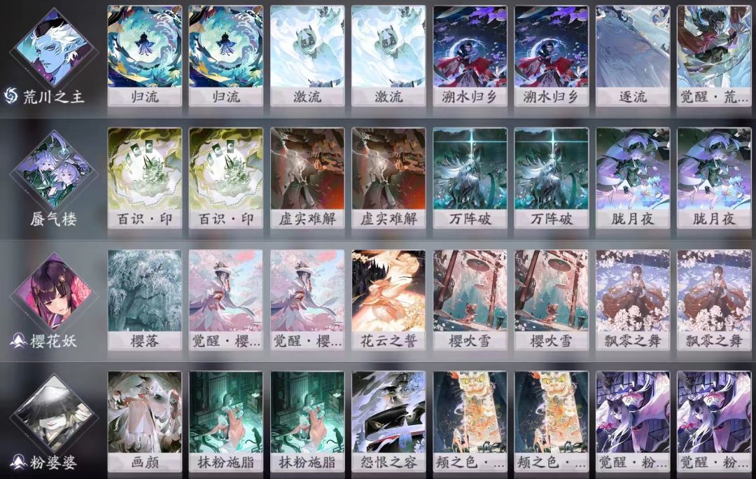 不算能从5日自选里拿的樱花妖,6张SSR。这套卡组,荒川、蜃气楼贯彻了什么叫铁打的辅助,流水的C。