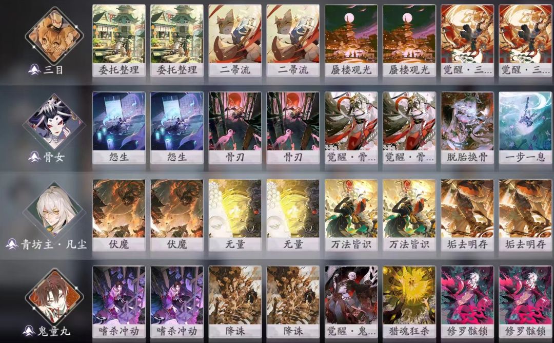 剩下4个是可以随意,怎么舒服怎么来。或者我推荐拿“齐货可居”的式神,譬如:百目鬼,活动特攻式神;妖刀姬,otk。