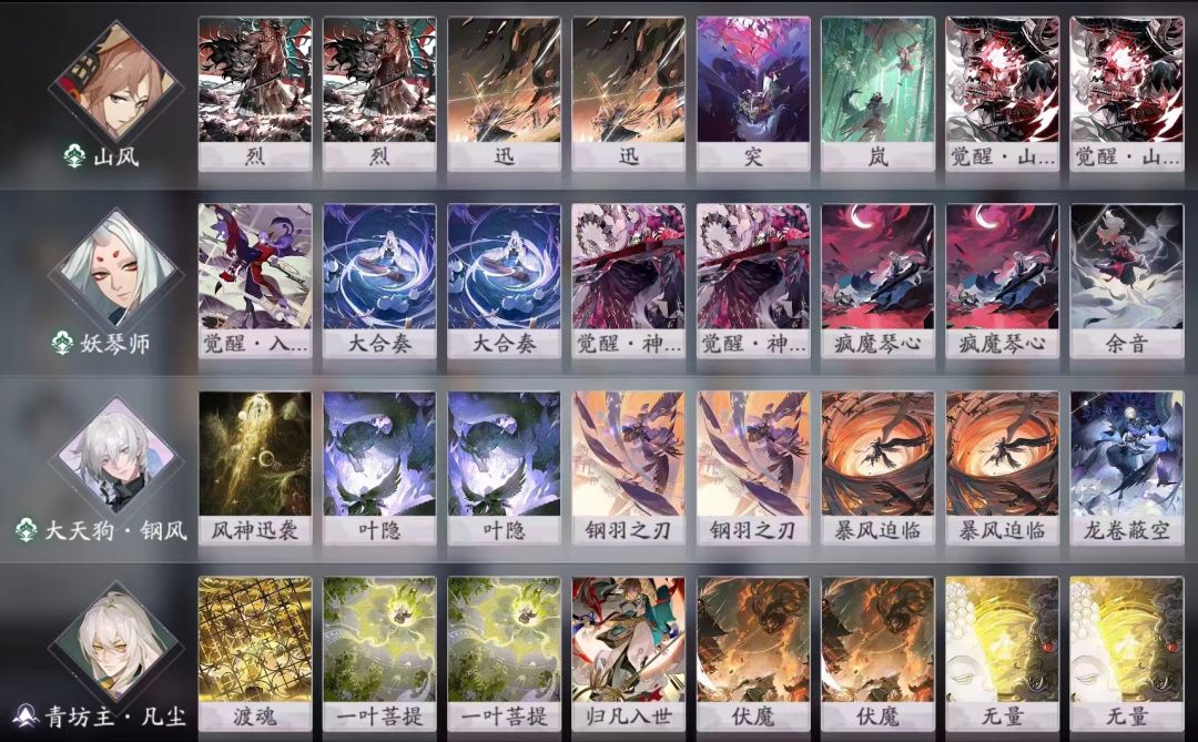 有4个是可以先选的,就为了组阵容,妖琴师、鬼童丸、妖狐、凤凰火。