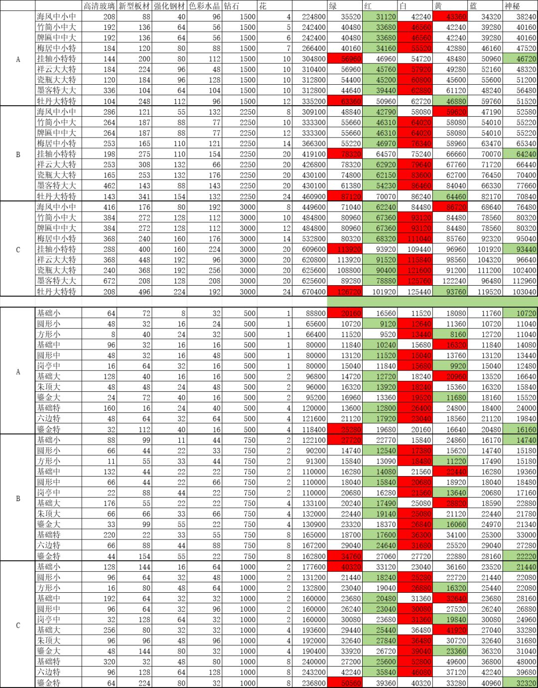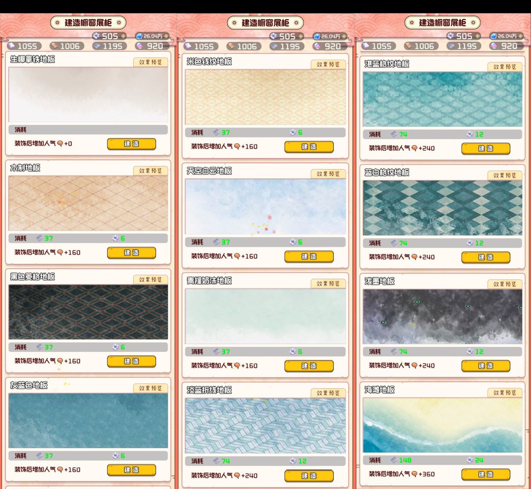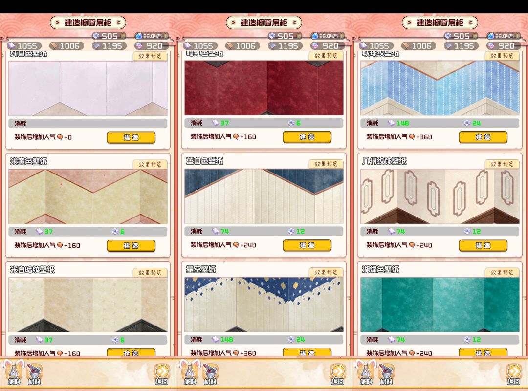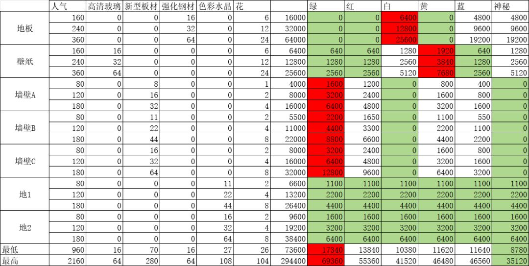 🤫👀:目前开放两层,第二层要的蓝星花是第一层的a区3倍,b区2倍,c区2.5倍,所以可以在第一层建最贵的,个人打算壁柜牡丹+展柜特(仅供参考)