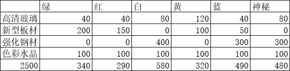 主要材料所需能量表格[提供者:柒壹]