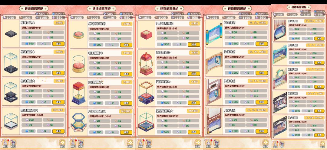 需要自建展柜→左下建造🔨
