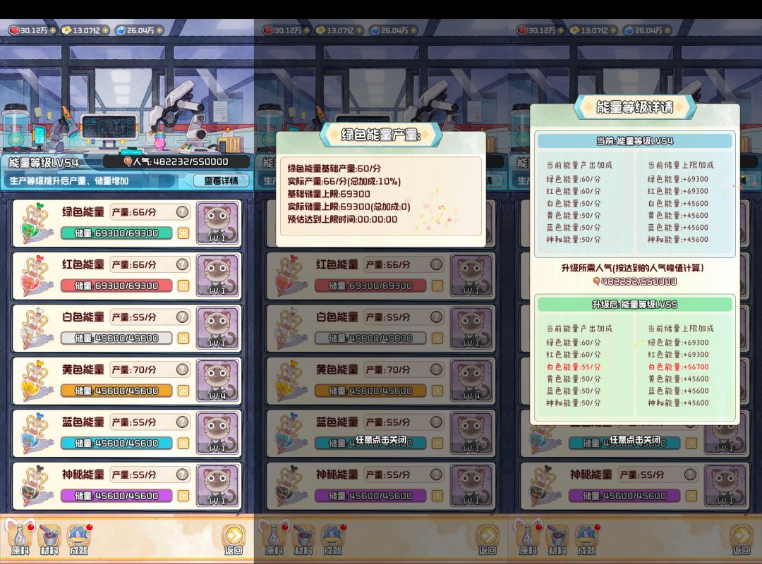 人气提升能量等级,能量等级与能量产量、储量挂钩
