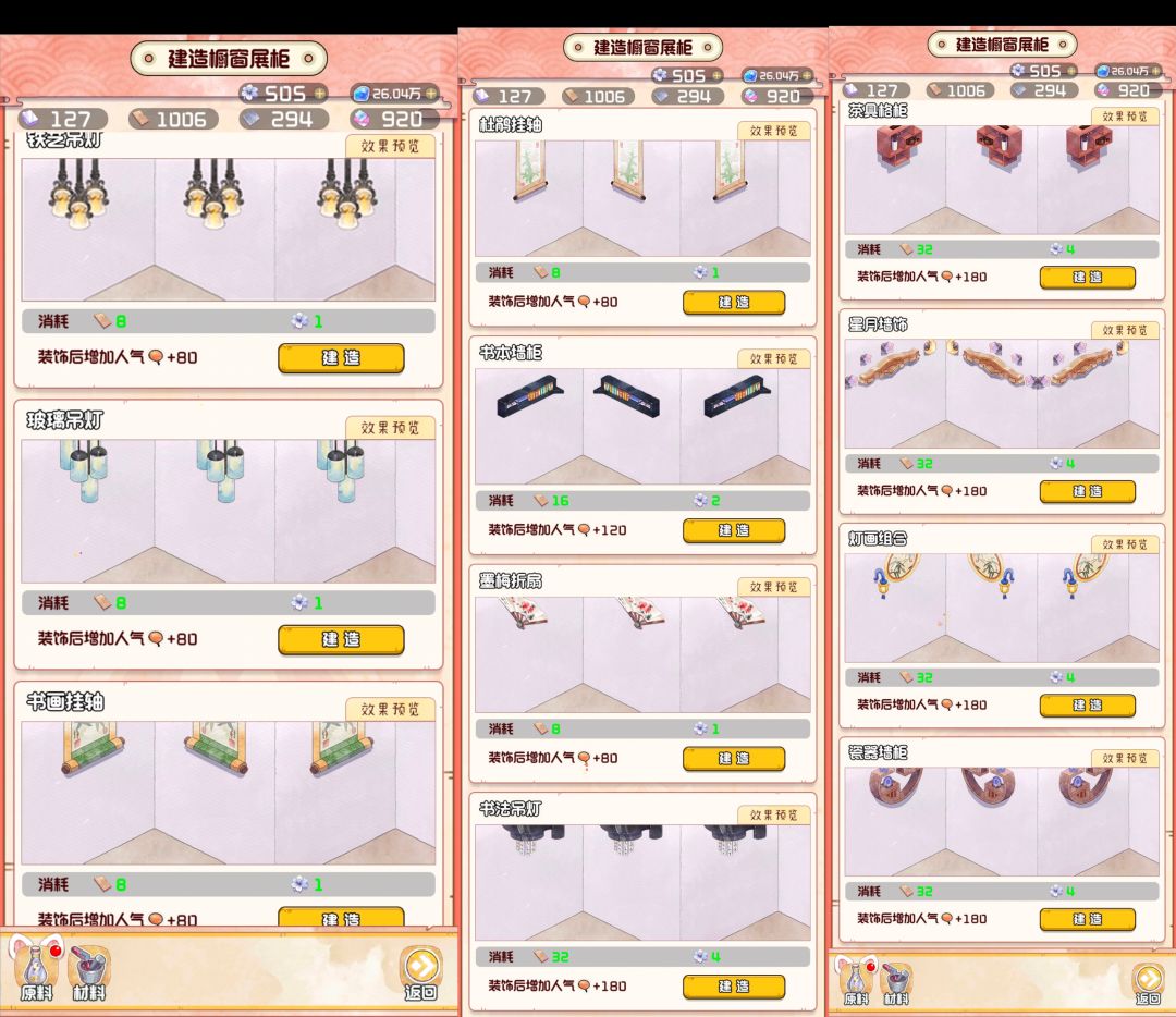 🌟推荐建造顺序:A区展柜→A区壁柜→BC区展柜→BC区壁柜【位置改建需要改建卡,装饰无代价❗️】