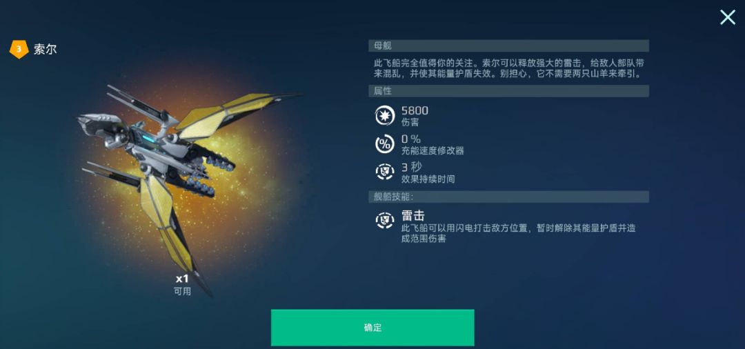 此飞船可以用闪电打击敌方位置,暂时解除其能量护盾并造成范围伤害。