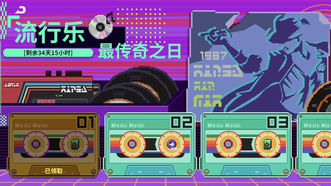 每日登录登录,总计14天(嗯,又一次致敬了MJ,槽点,1987发行专辑《Bad》,但是图片放的却是《King Of Pop》的专辑封面)