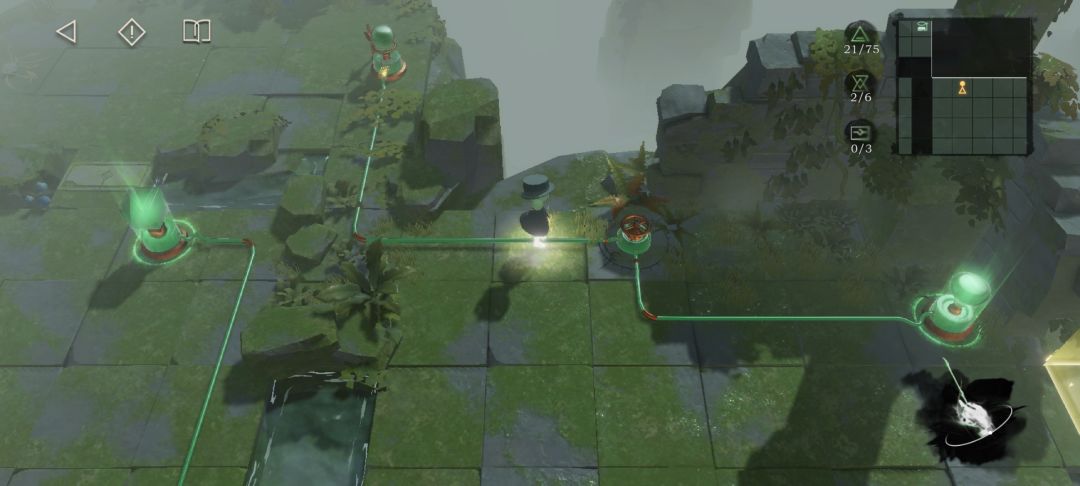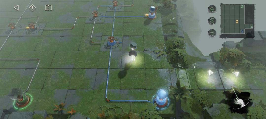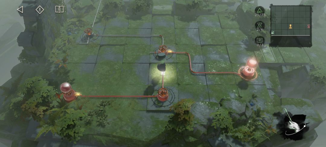 如图所示,图中标记的三个机关各踩一次点亮所有石柱