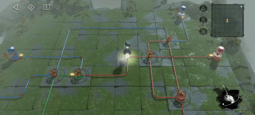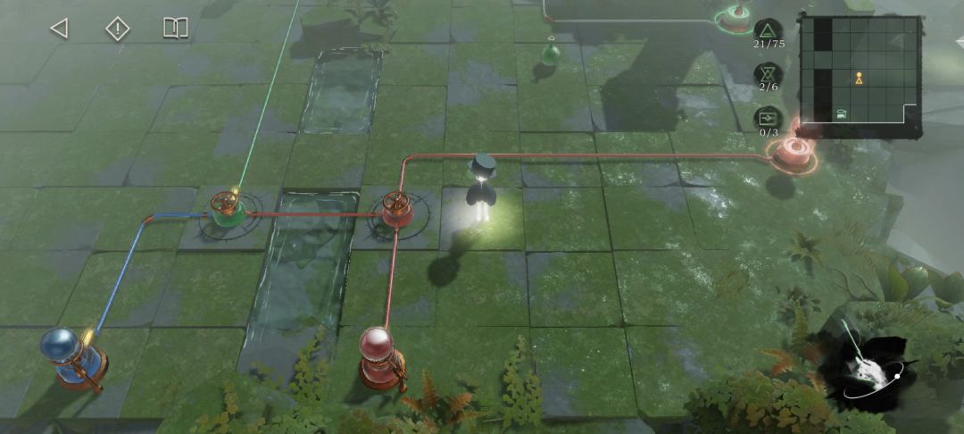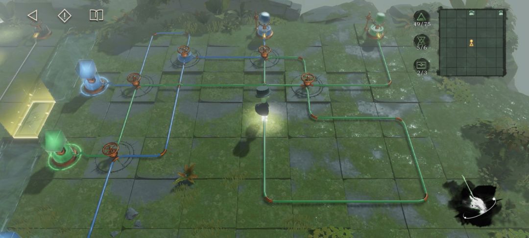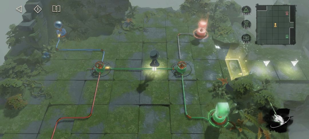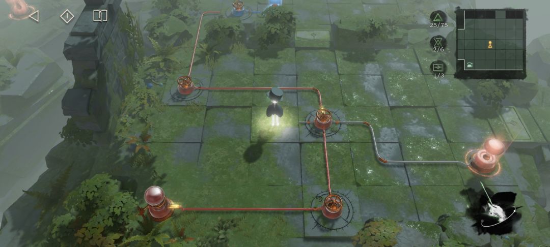 如图所示,图中标记的三个机关各踩一次点亮所有石柱