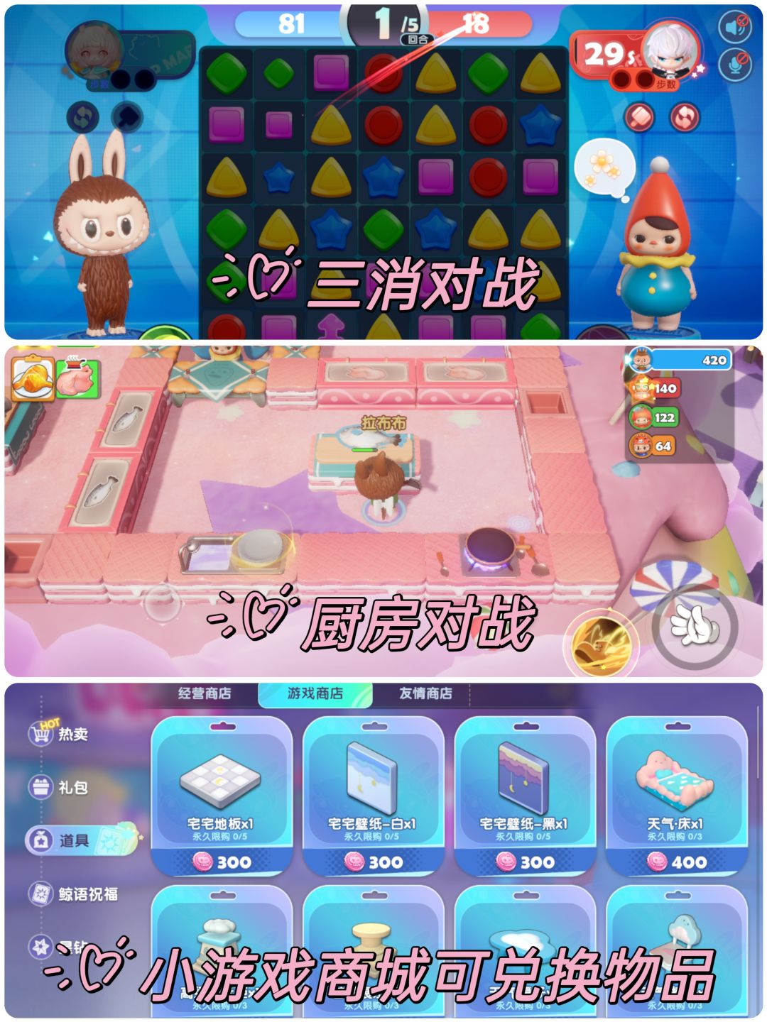 小游戏的积分也可以换很多道具和家具。邀请角色入住云鲸岛,可以给他们安排住在寻梦者之家,再给他们制作及布置家具。家具可互动的也很多。寻梦者之家可以派遣角色挂机收集材料,也算是个平衡体力消耗的设定。