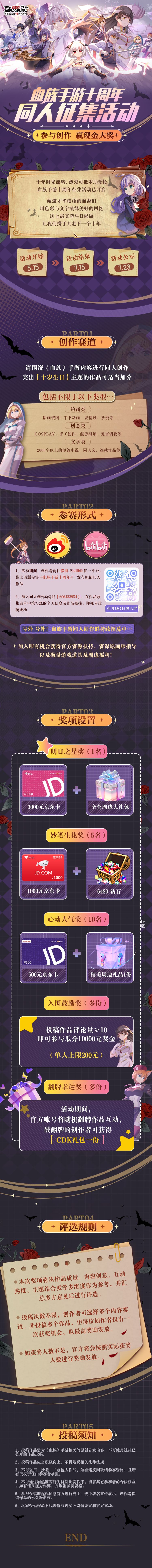 十周年之际,我们特别邀请才华横溢的你,参与到血族手游的共创计划!前往微博或bilibili,用你喜欢或擅长的方式进行创作,一起瓜分创作奖金及各种限定周边、礼包!