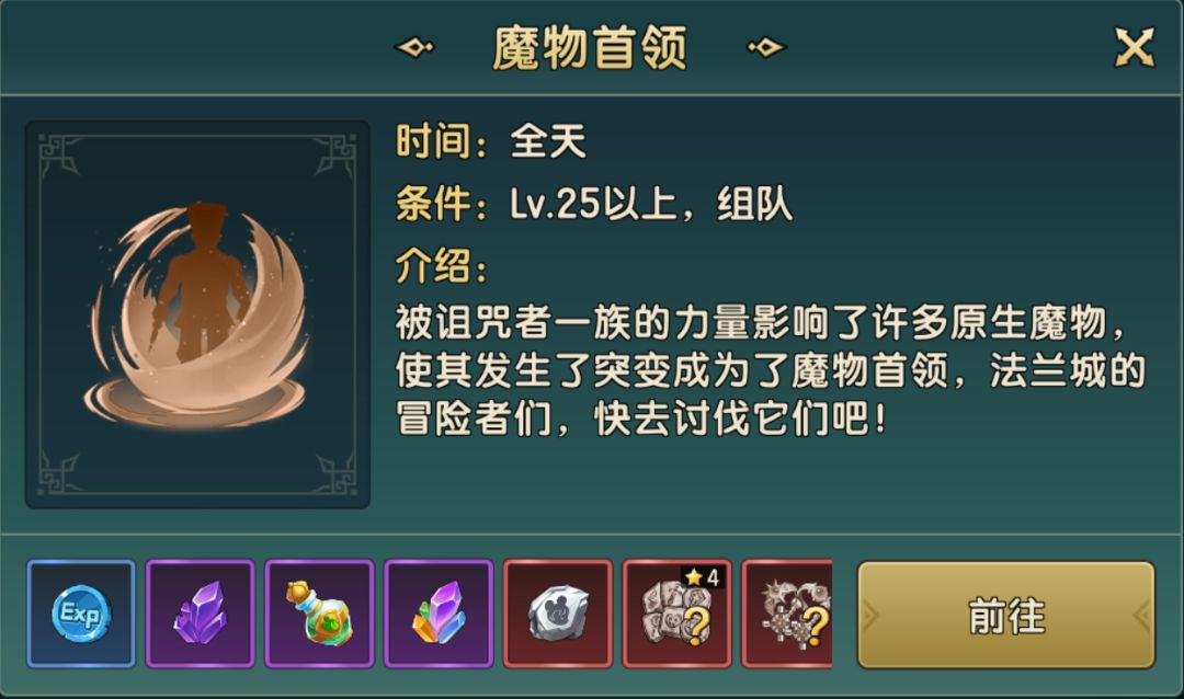 各位冒险者,是否还在为缺少装备发愁,不妨去挑战一下魔物首领吧。