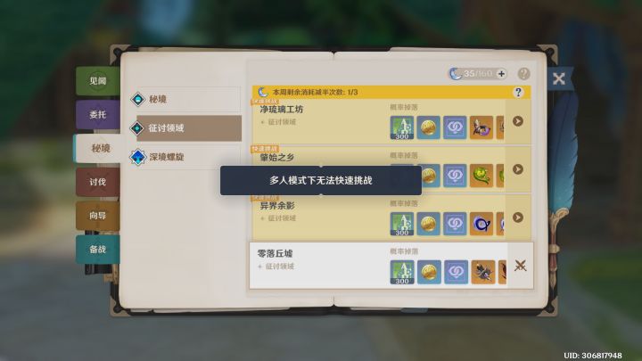 这就相当于逼着萌新单人solo周本,这对萌新未免太不友好了吧?我一个老登都懒得用小号进去慢慢刮,更别说萌新了,而且萌新就算想刮都不一定能刮赢呢。要不然就是逼着萌新一路推完五国主线,开启仆人传说任务后再拉人去打,那设计这功能的意义何在呢?