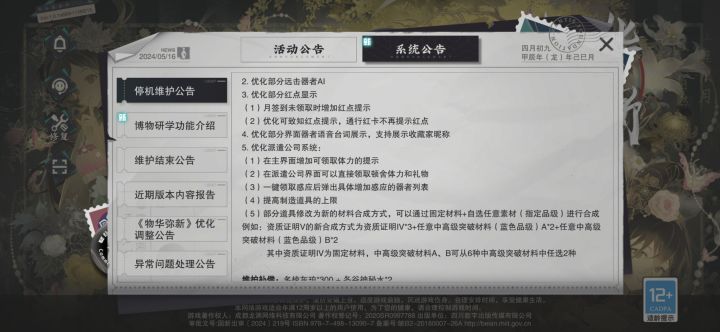 资质合成改动公告出来了,蓝色材料再无fw。之前劝大家收手是我的错,请有计划未来练多个角色的玩家这几天尽量把体力全部用来刷材料吧。