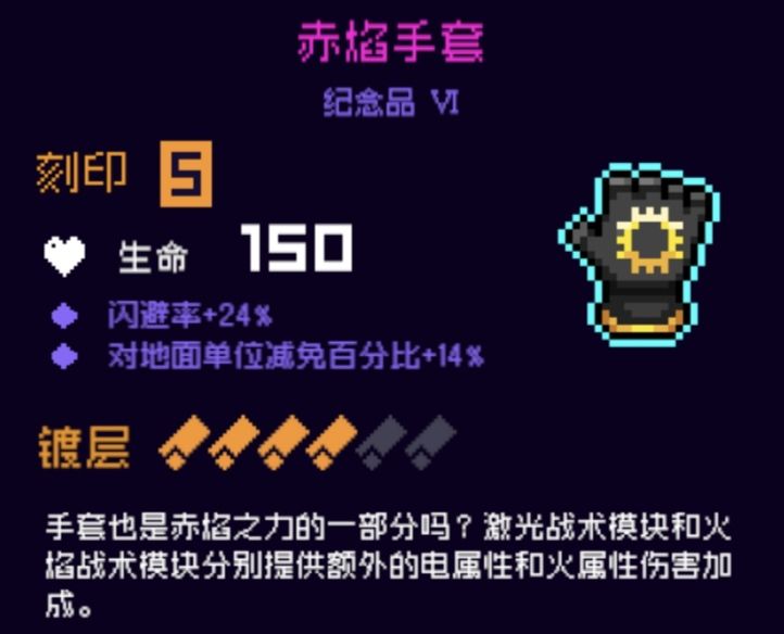 本次up池的副up橙色纪念品,效果为激光模块与火焰模块额外提供电火属性伤害,朴实无华的伤害加成道具 可有可无。