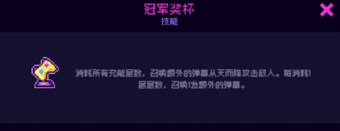瞬间消耗全部层数召唤弹幕对全屏敌人进行打击,每消耗一层发射一枚弹幕↓